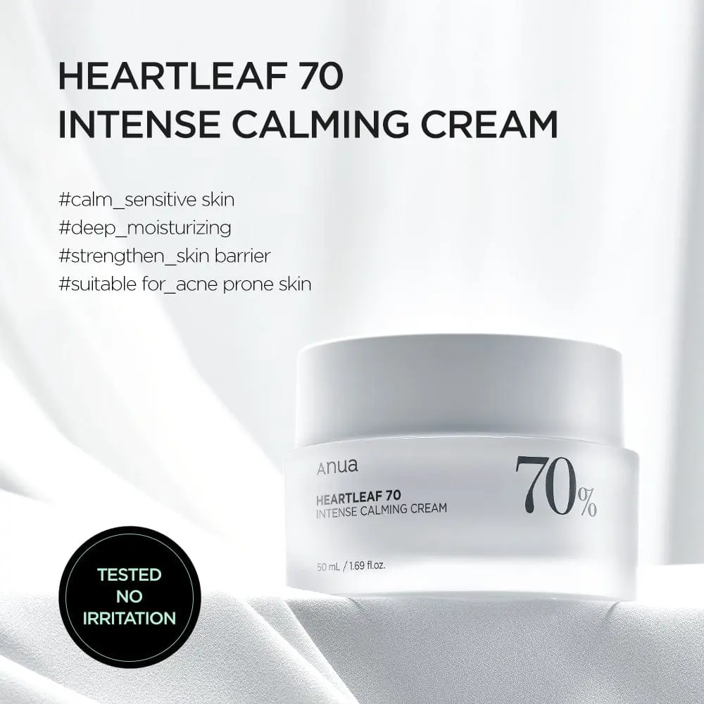 Anua Heartleaf 70% Intense Calming Cream deeply soothes and hydrates sensitive, acne-prone skin with Heartleaf extract, perfect for Pakistan’s climate.