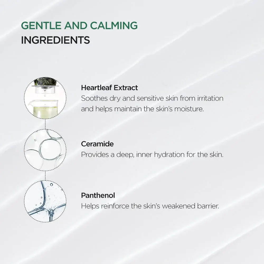 Heartleaf Extract (70%) – Soothes irritation, reduces inflammation, and calms acne-prone skin.